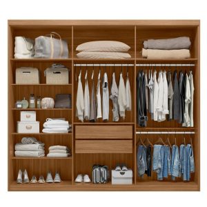 El Ropero Doble Casal de 240cm redefine tu dormitorio. Detalle ripado, 6 puertas, 4 cajones telescópicos y 10 estantes. ¡Máxima capacidad y diseño premium!