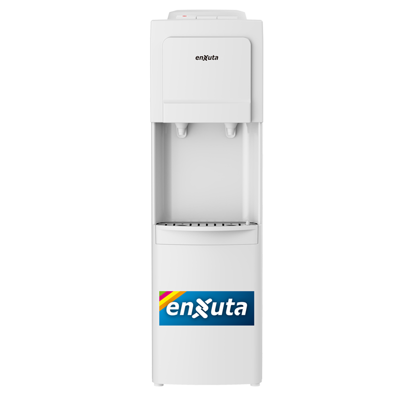Bebedero de agua Enxuta para botellones de 20L, con capacidad para 3L de agua fría y 5L de agua caliente. Con tecnología de protección contra sobrecalentamiento y seguridad para niños.