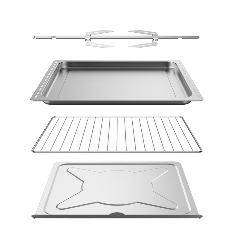 •Accesorios: Bandeja para migas, rejilla, espadas para asado