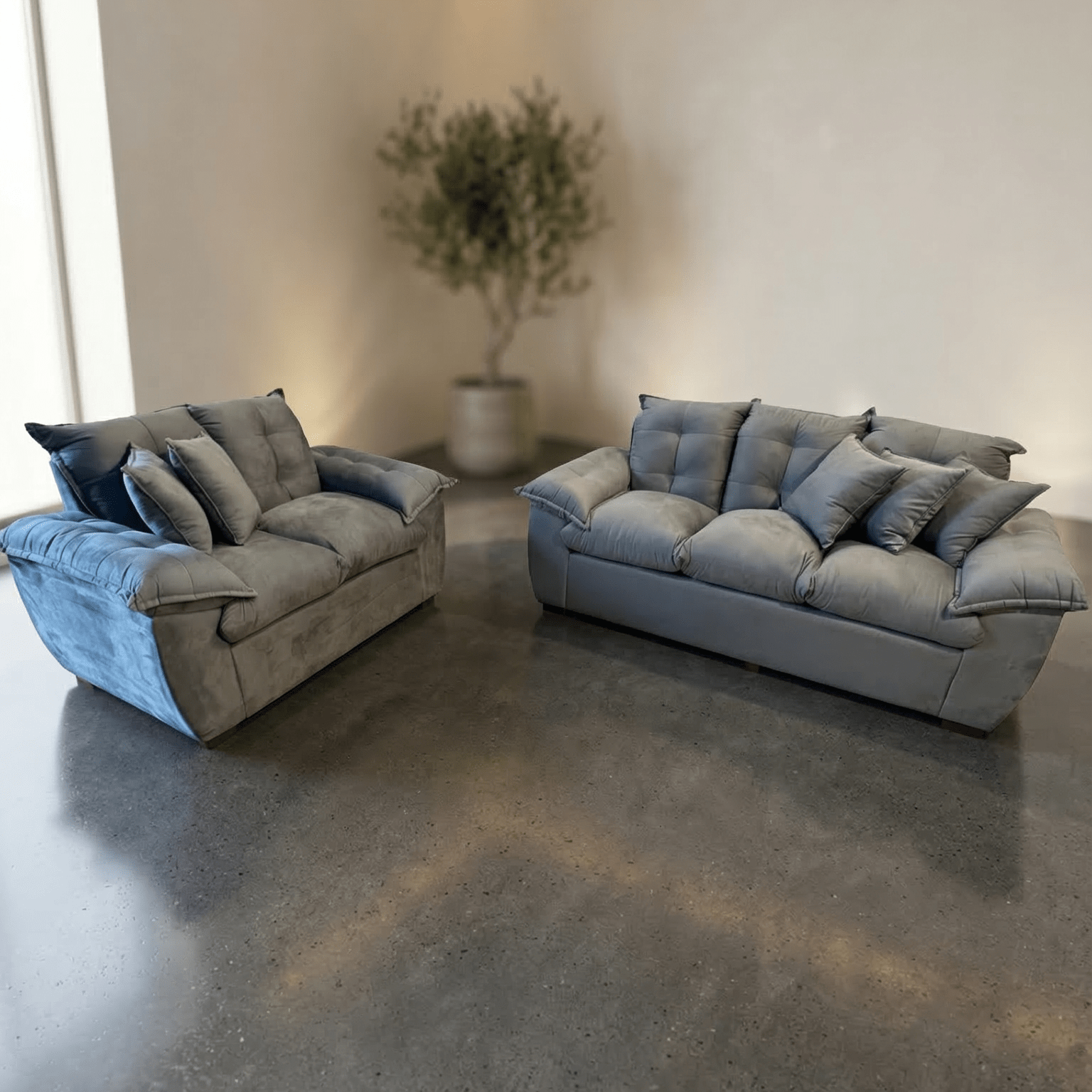 ¡Dale a tu sala el lujo que se merece con el Juego de Sofás! Este increíble combo de 3 y 2 lugares en color gris es la combinación perfecta entre diseño moderno y confort absoluto. Está fabricado con tela sweed ultra suave y relleno 100% siliconado para que descanses como nunca. Además, ¡te llevás almohadones de regalo con tu compra! No des más vueltas, agregalo al carrito y transformá tu espacio.