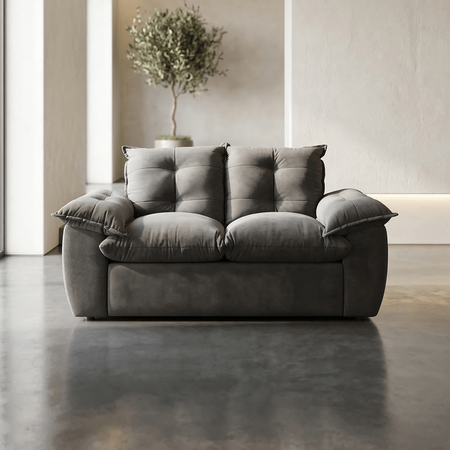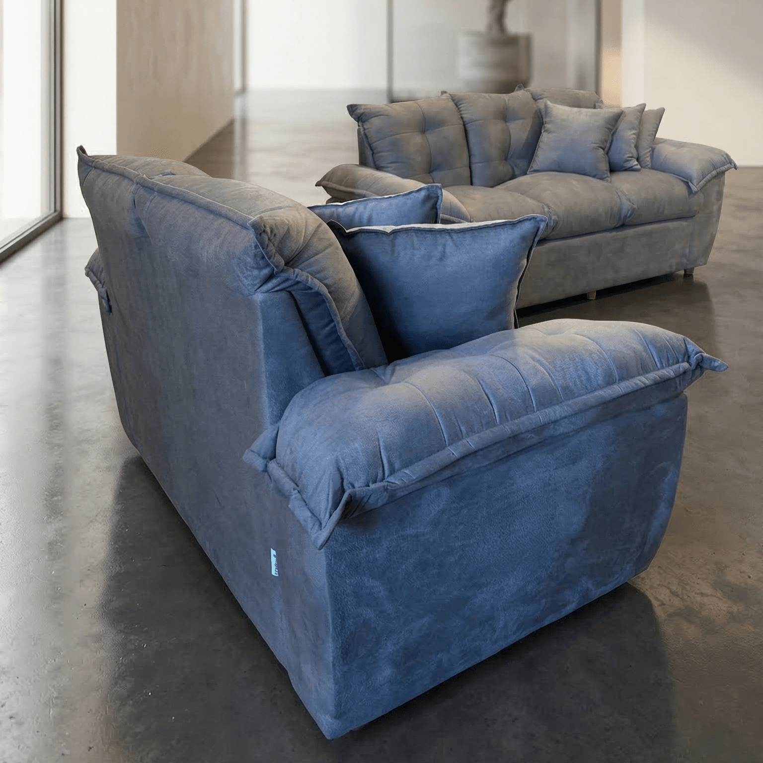 No compres sofás duros e incómodos. El modelo está pensado para tu descanso total. Está tapizado íntegramente en tela sweed (tipo gamuza), un material que no solo le da un toque sofisticado y premium a la vista, sino que es increíblemente suave al tacto y fácil de mantener.