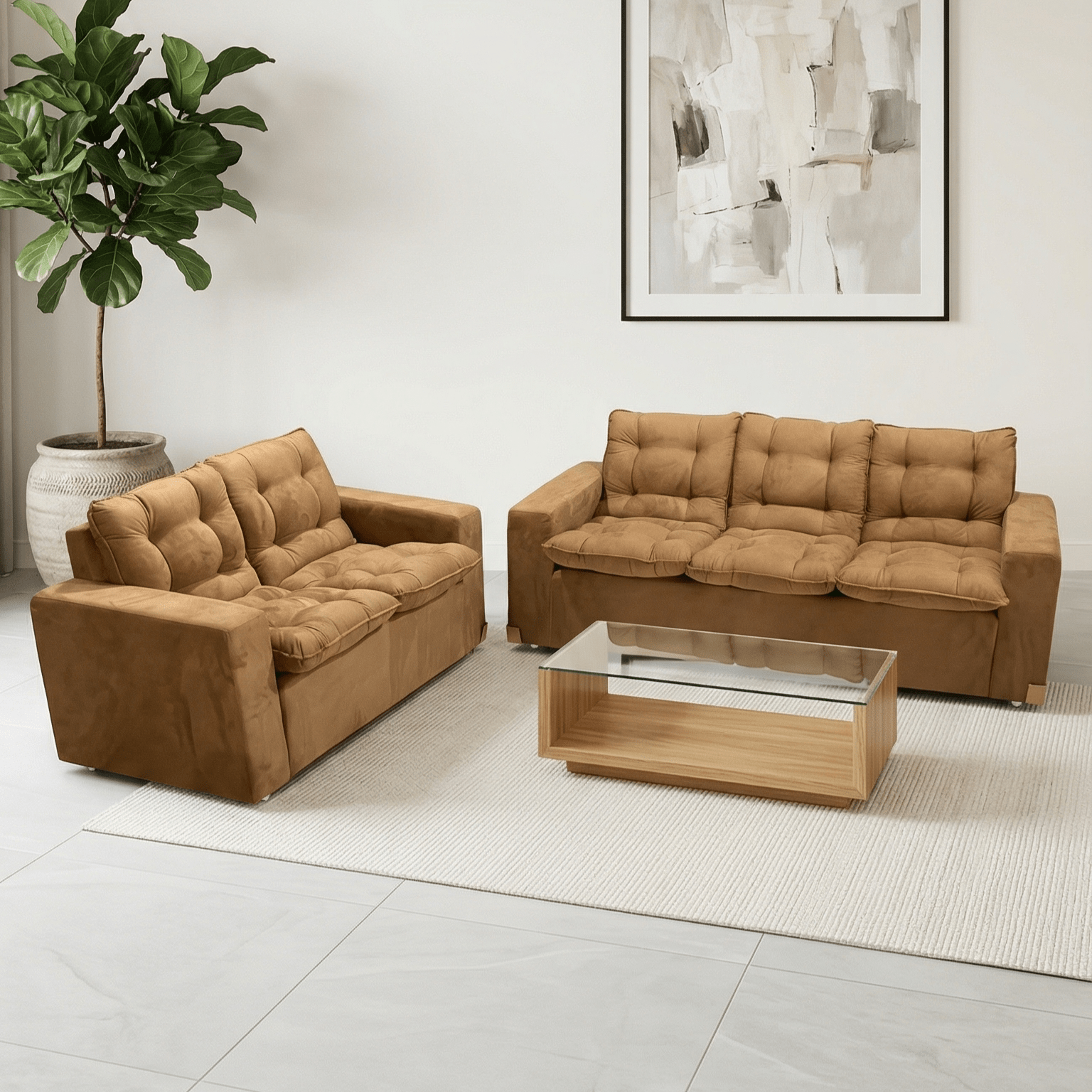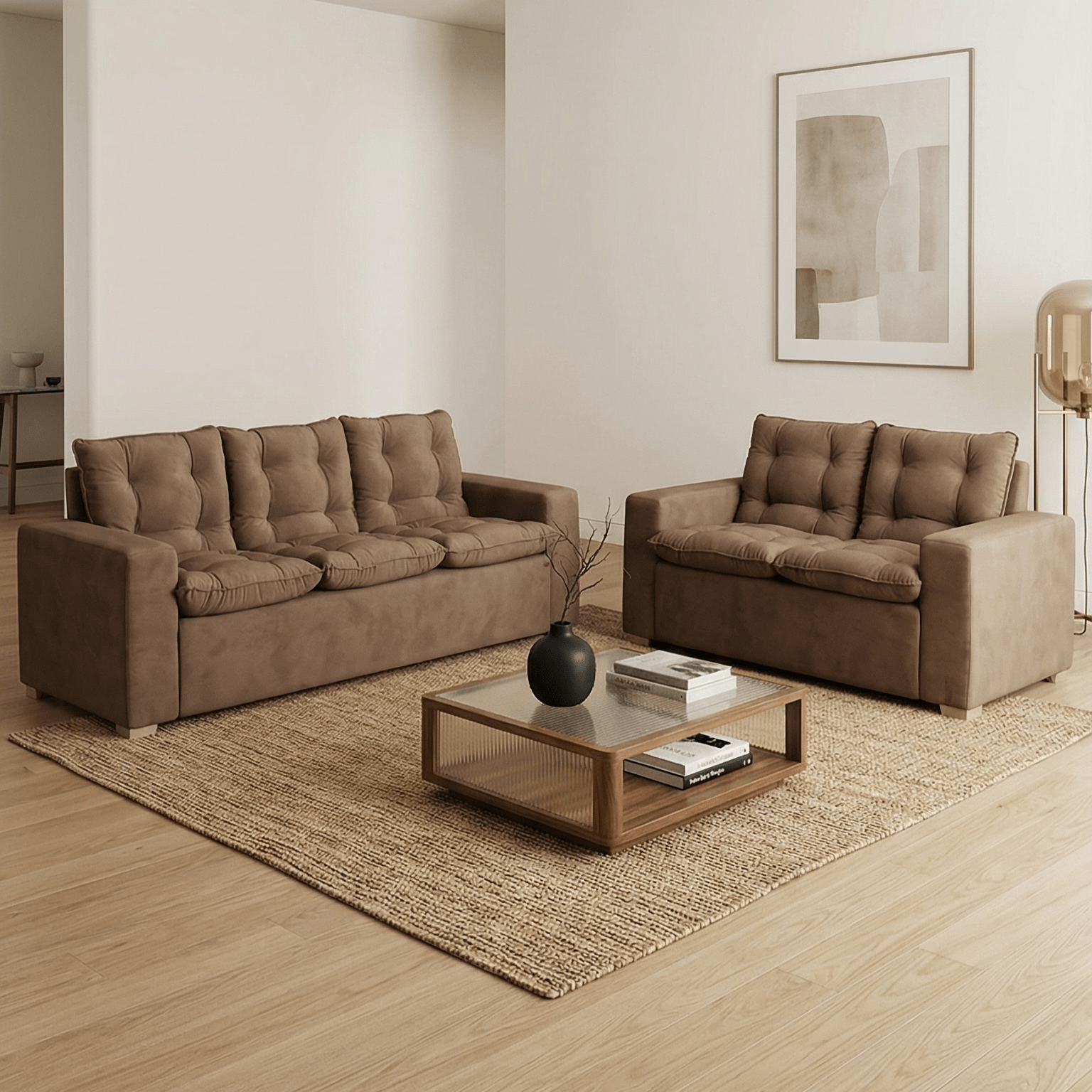 ¡Dale a tu hogar el confort que merece con el Juego de Sofás Arizona! Este conjunto es la solución perfecta para tu sala, incluyendo un amplio sofá de 3 cuerpos (210 cm) y uno de 2 cuerpos (150 cm). Elegí el tono que mejor vaya con tu decoración: disponible en los elegantes colores Chocolate y Nutria. Su diseño con detalles capitoné asegura durabilidad y una estética impecable de catálogo. Aprovechá nuestro precio especial al contado o llevalo en cómodas cuotas. ¡Agregalo al carrito y transformá tu espacio de descanso!