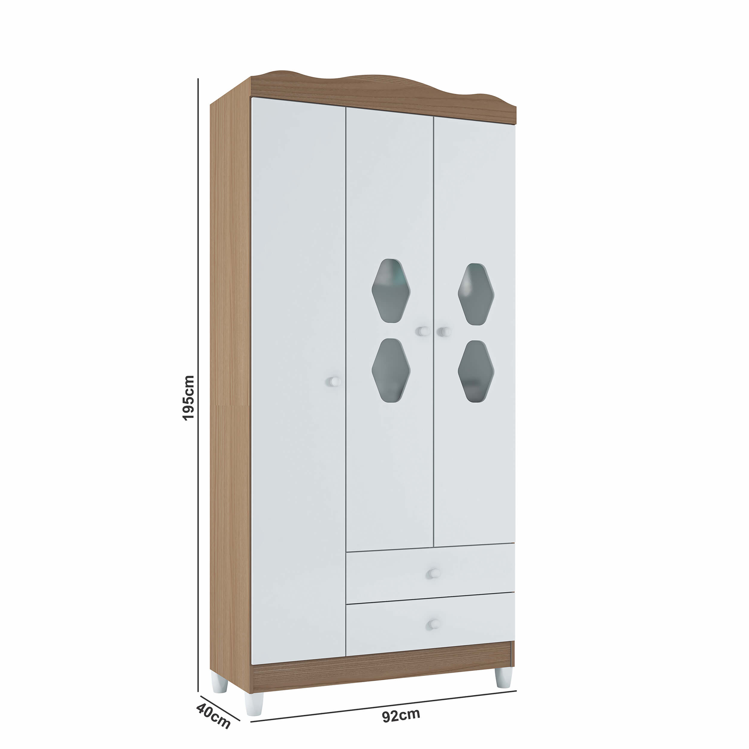 El Ropero Lolly es la opción perfecta para mantener la ropa y accesorios siempre en orden. Su diseño compacto de 92 cm de largo, 195 cm de alto y 40 cm de profundidad lo hace ideal para habitaciones con poco espacio, ofreciendo al mismo tiempo una excelente capacidad de almacenamiento.