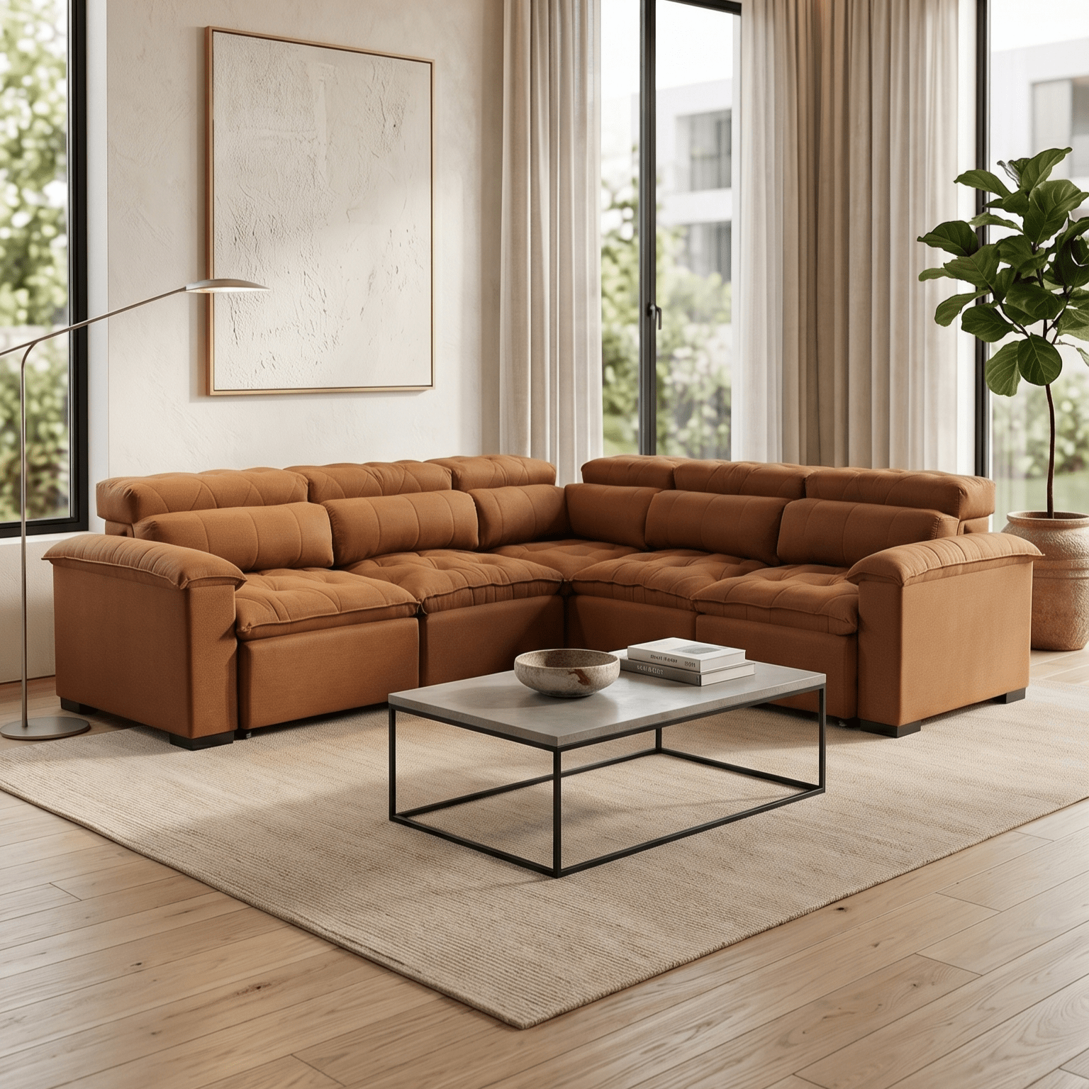 Sofá familiar retráctil y reclinable de 295×295 cm, ideal para compartir momentos de relax. Diseño moderno y cómodo para toda la familia.