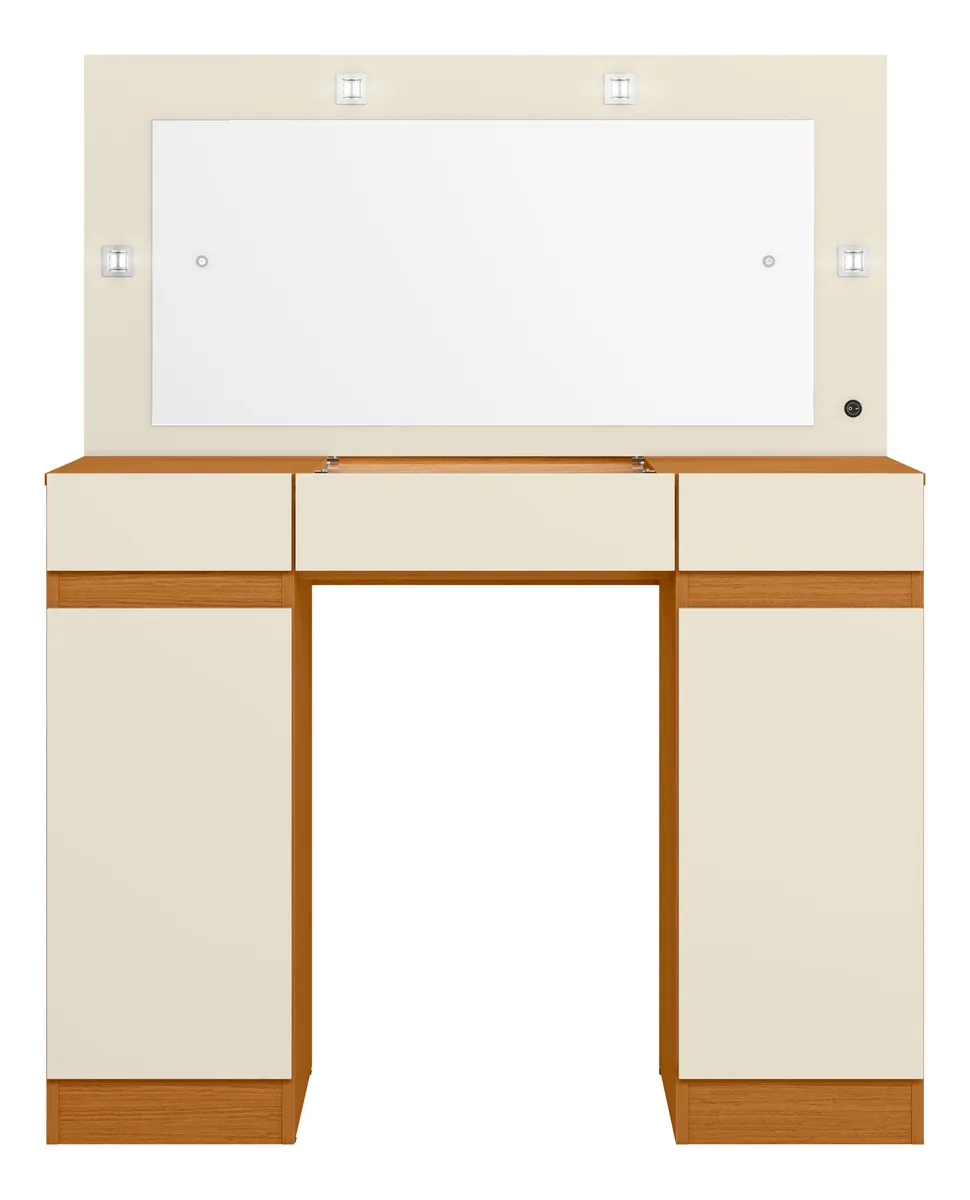 Su diseño sofisticado cuenta con un amplio espejo, 2 cajones laterales y un cajón central con rieles telescópicos, brindando funcionalidad y estilo a tu espacio. Además, incluye 4 luminarias LED para una iluminación perfecta.