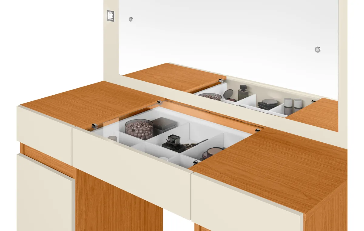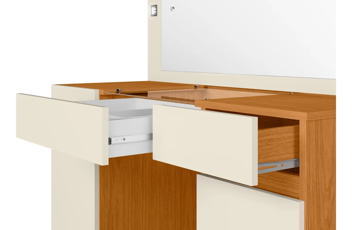 El Tocador R3 Cinamomo es más que un mueble, es una declaración de elegancia y funcionalidad. Con un diseño moderno y minimalista, este tocador cuenta con un amplio espejo que te permitirá verte con comodidad, y un sistema de almacenamiento perfectamente organizado.