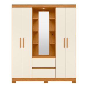 Ropero M3 Cinamomo Mate/Off White con vestidor central, 2 cajones, manijas de MDF y espejo. Ideal para mantener tu dormitorio organizado con estilo moderno.